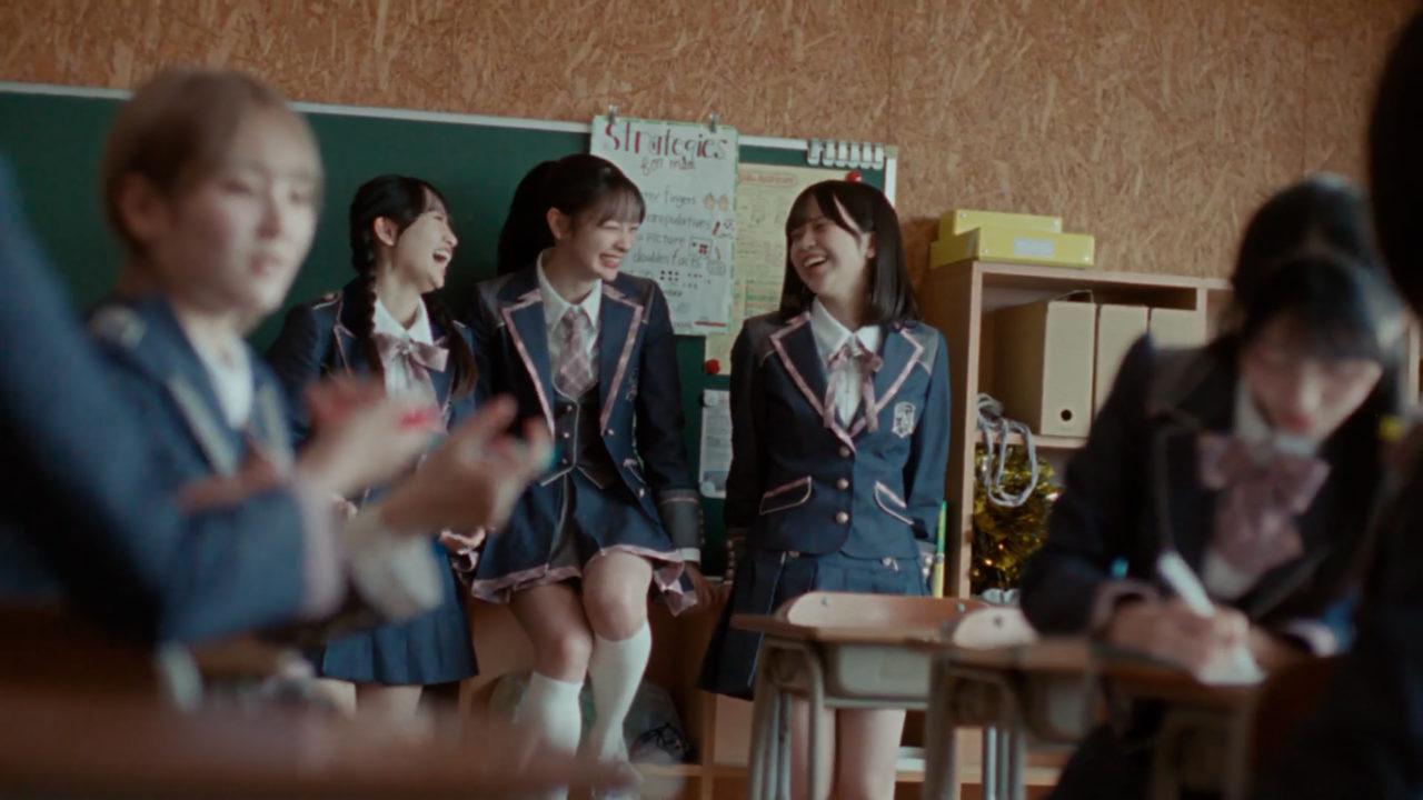 白浜中学校は2024年に閉校している。現在は体育館のみが白浜体育館として利用可能。通学路のシーンは学校前の道路。