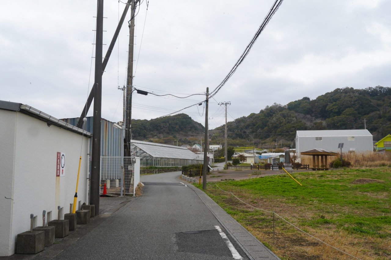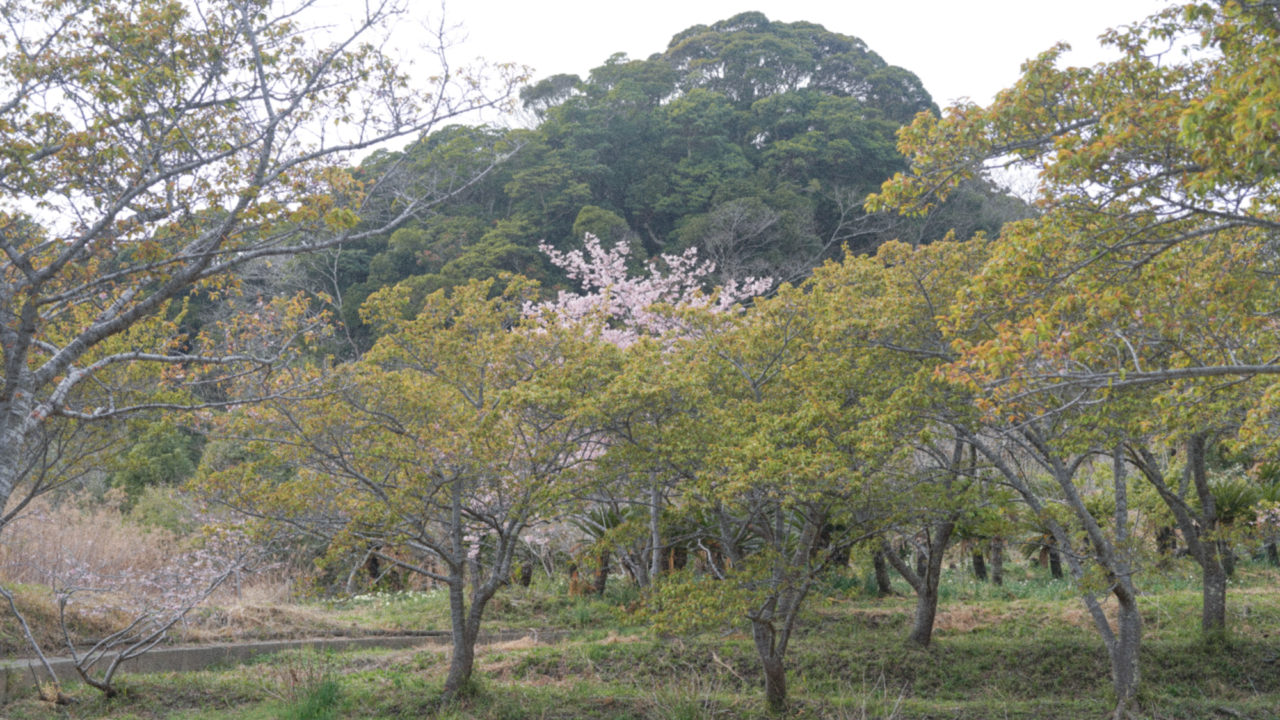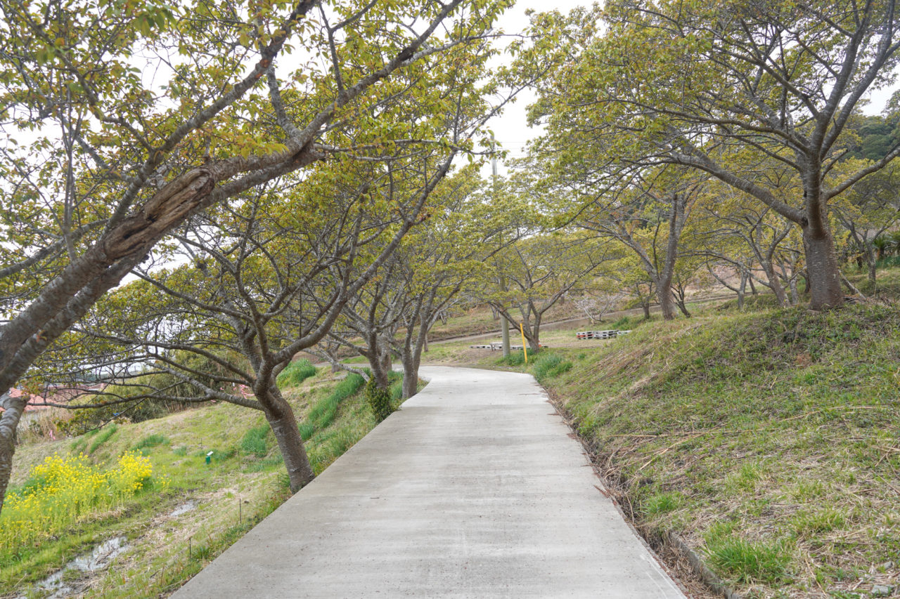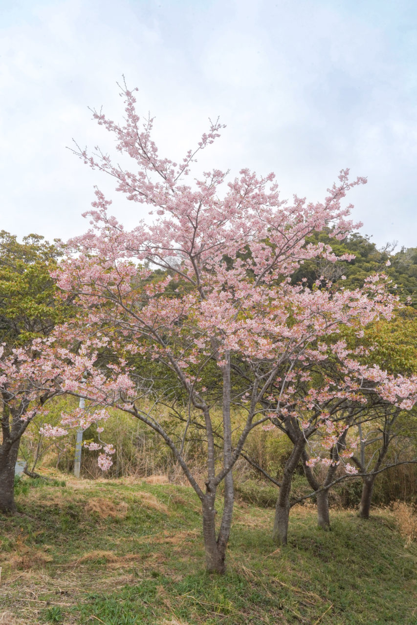 坂を登っていくと、見たことのある風景が!桜は撮影時とは別の種類が少し咲いていただけでしたが、菜の花も咲いていて海も見えるいい場所でした。