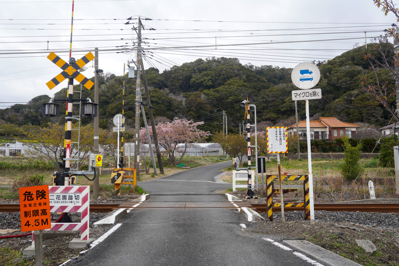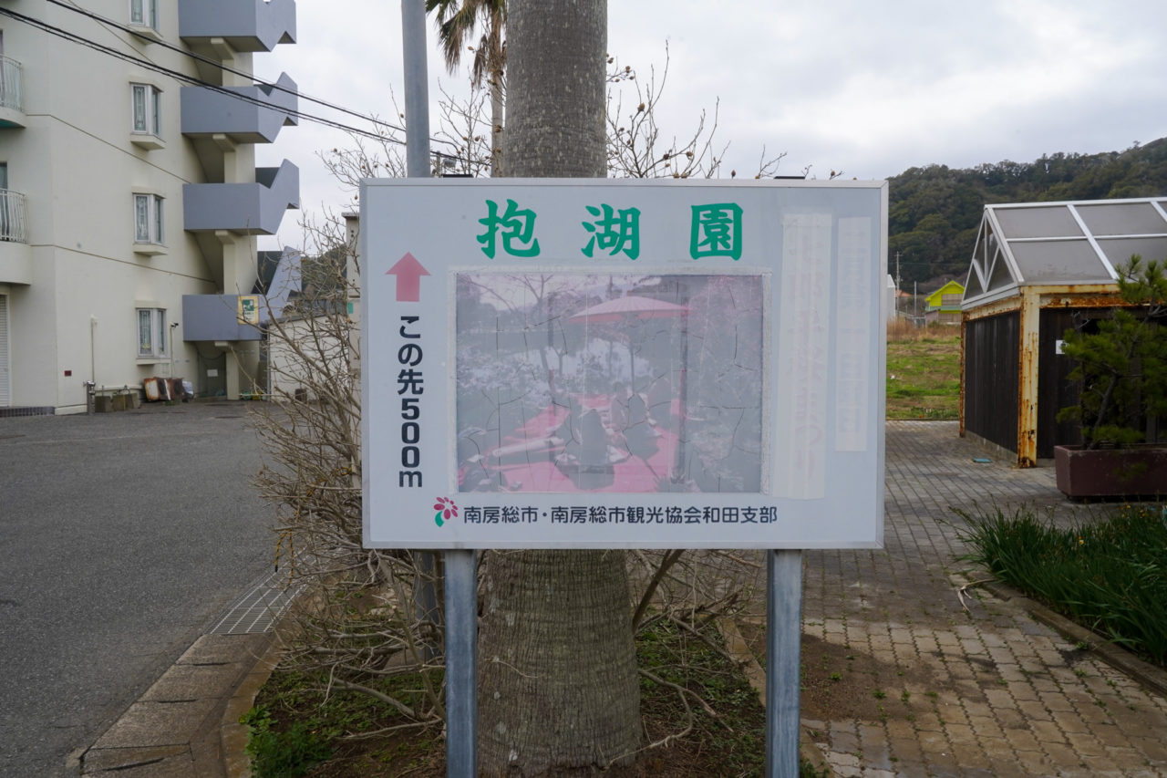 ロケ地の抱湖園(ほうこえん)近くの無料駐車場に車を停め、途中踏切を渡りつつ500mほど進むと着きます。