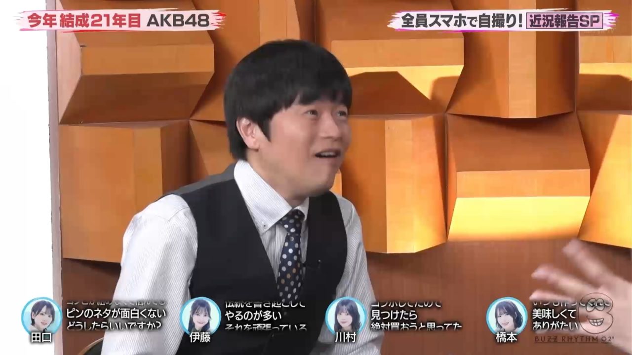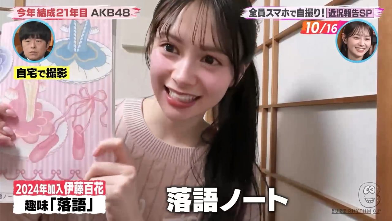 また「スマホで近況報告」というコーナーではメンバーが自分で撮影した趣味などの映像を披露。各メンバーをフィーチャーしてくれた素晴らしいコーナーでしたので必見です!いとももは落語ノートなどを披露し子供の時の写真も幾つか紹介されていました。