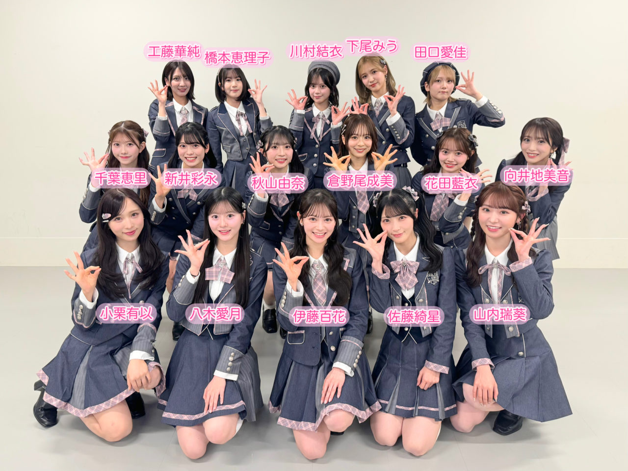 秋山由奈、新井彩永、伊藤百花、小栗有以、川村結衣、工藤華純、倉野尾成美、佐藤綺星、下尾みう、田口愛佳、千葉恵里、橋本恵理子、花田藍衣、向井地美音、八木愛月、山内瑞葵