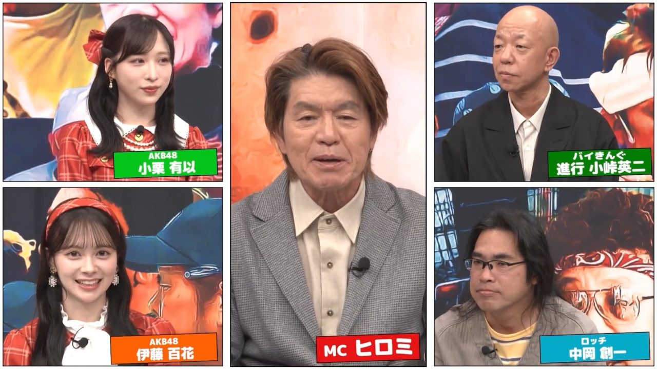 ゲストは、 中岡創一(ロッチ)、小栗有以・伊藤百花(AKB48) マイアミまでWBCを見に行った中岡さんに対し、 ○○にしか興味がない小峠さんは…? さらに、AKB48の2人の衣装はヒロミさんと関係が!?