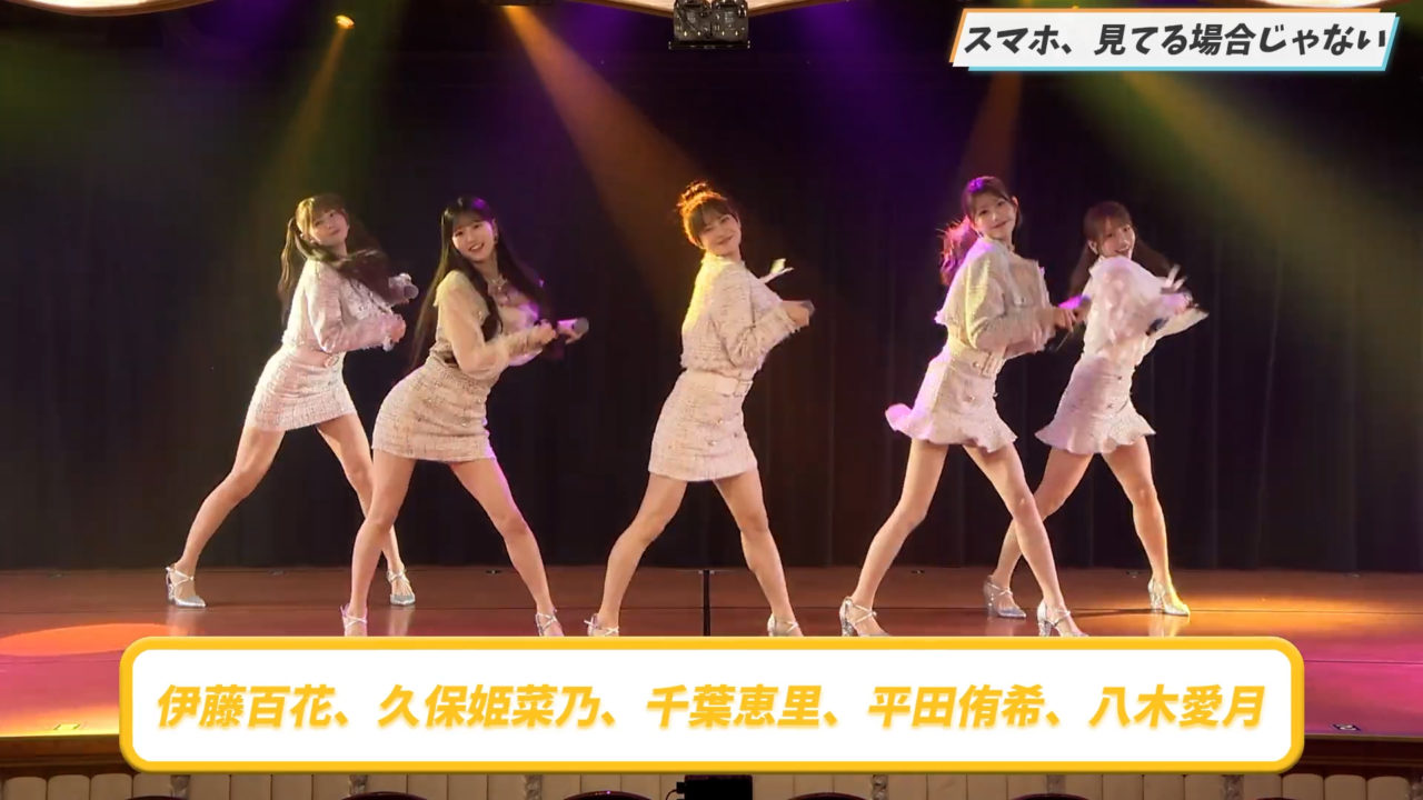 伊藤百花(センター)、久保姫菜乃、千葉恵⾥、平⽥侑希、⼋⽊愛⽉