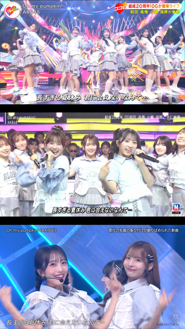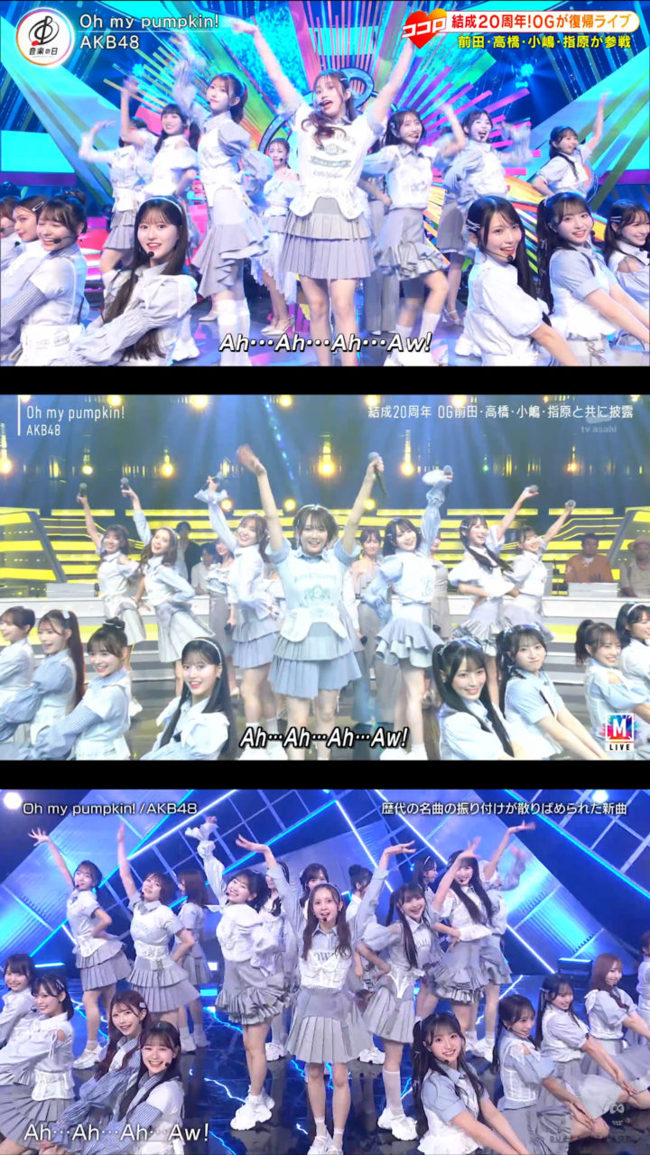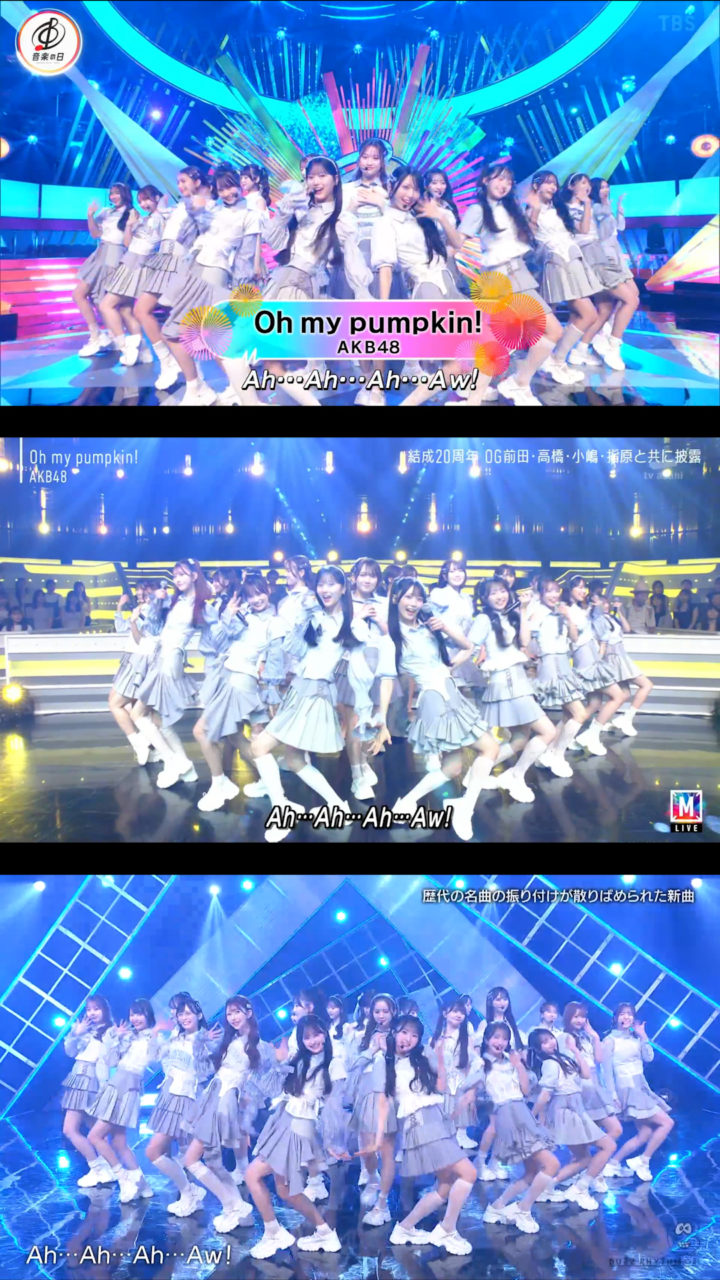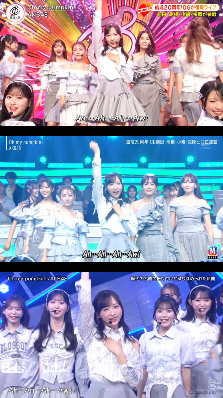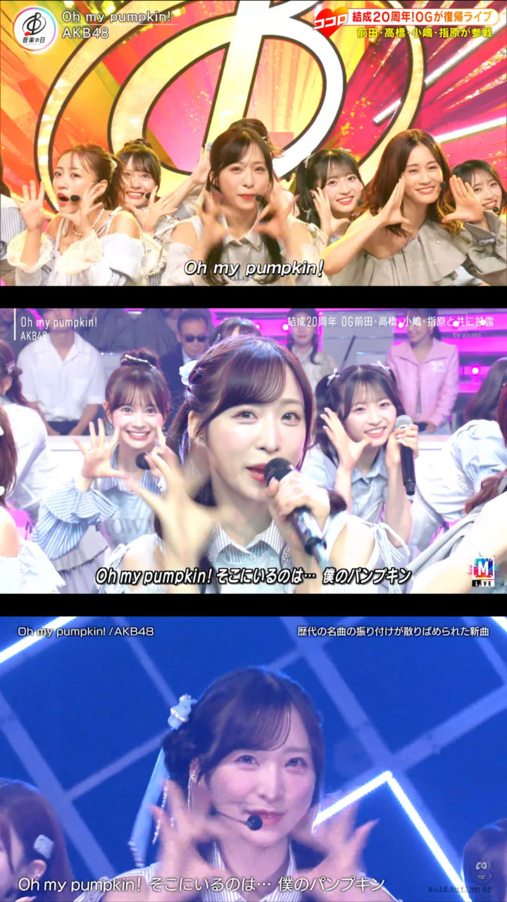 9月12日放送の「バズリズム02」にAKB48が出演、「Oh my pumpkin!」現役メンバー22人ver.を初披露しました。現役のみになったことに伴いポジションはもちろん一部振りも変わっていました。