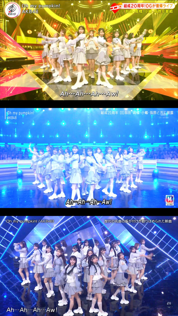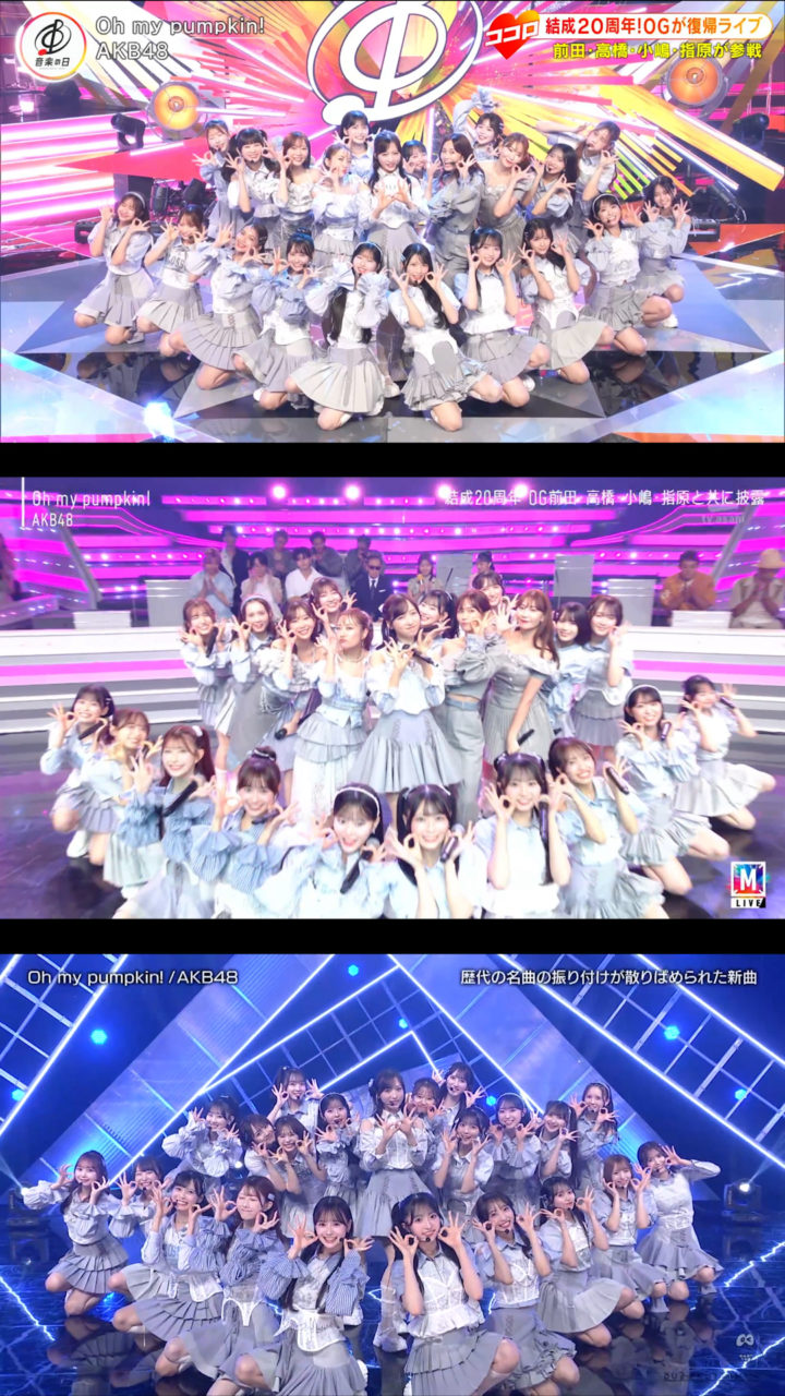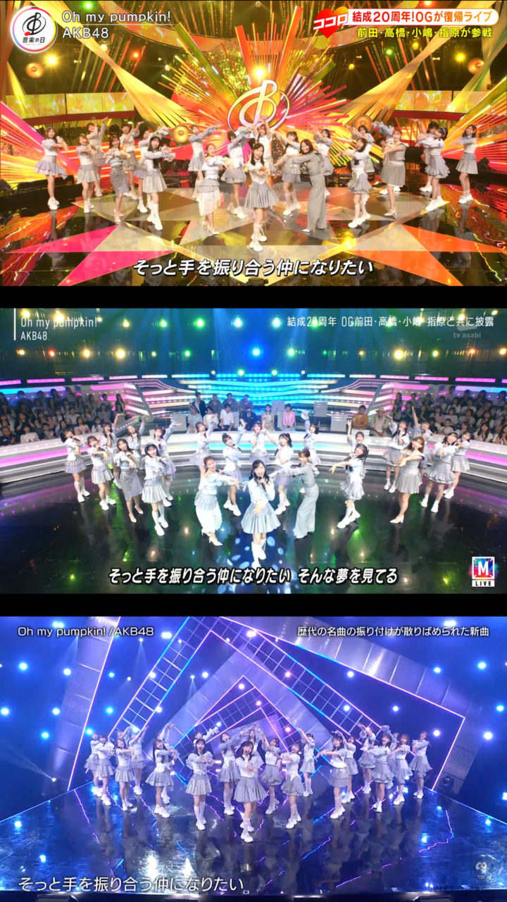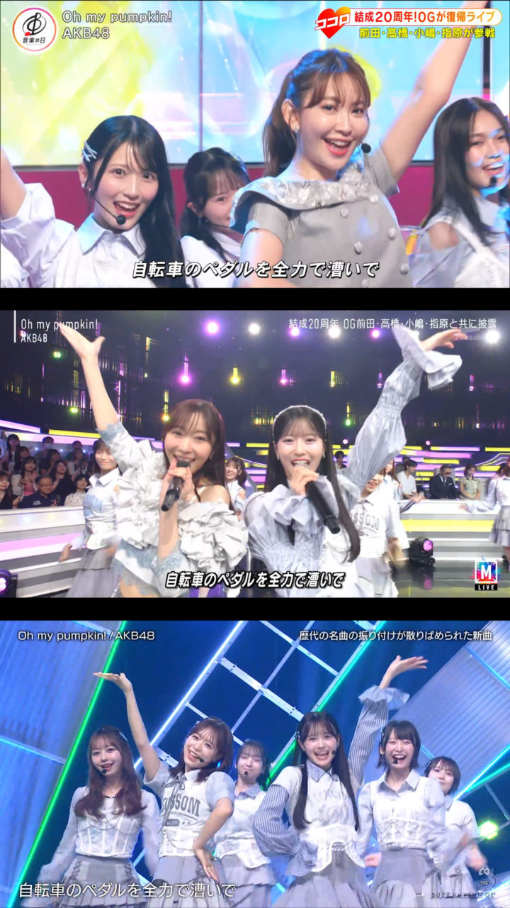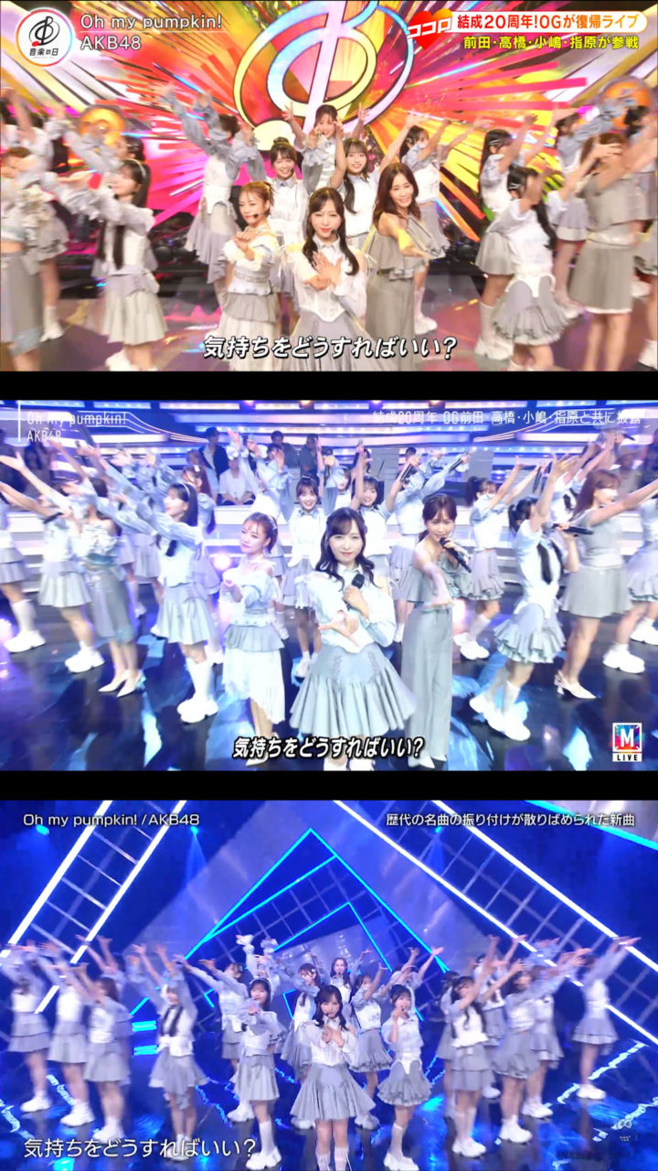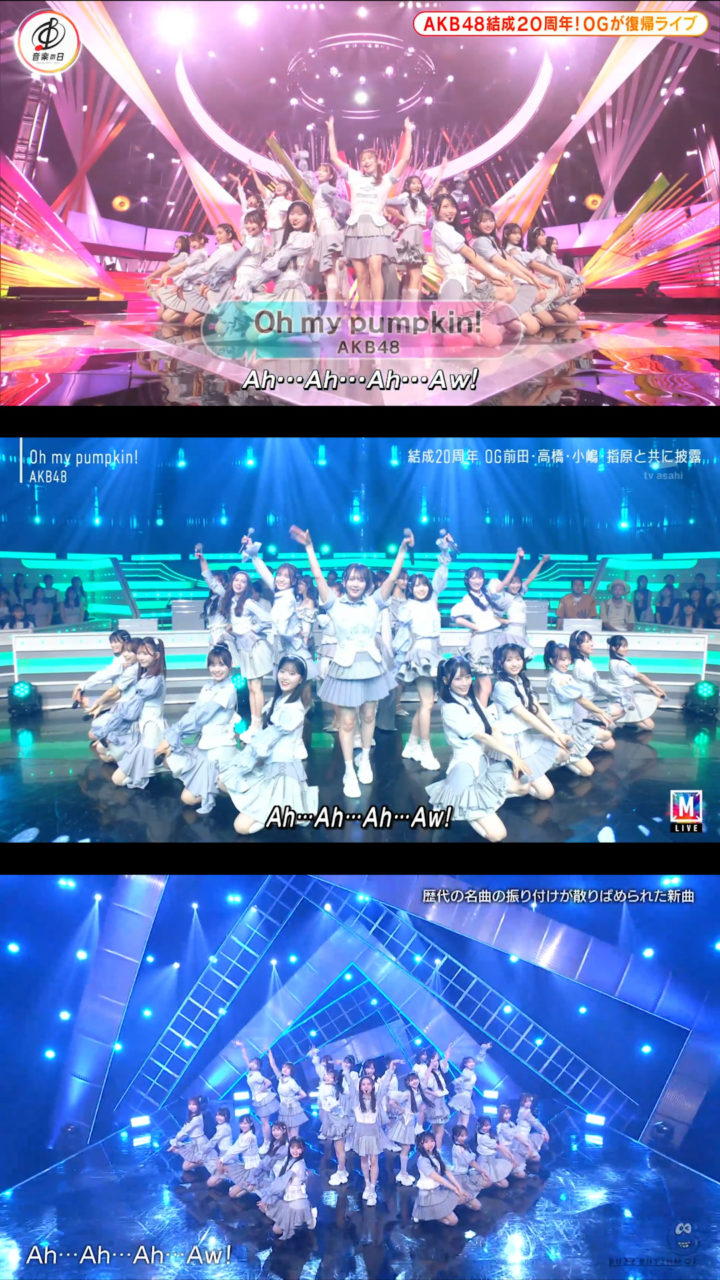 9月12日放送の「バズリズム02」にAKB48が出演、「Oh my pumpkin!」現役メンバー22人ver.を初披露しました。現役のみになったことに伴いポジションはもちろん一部振りも変わっていました。