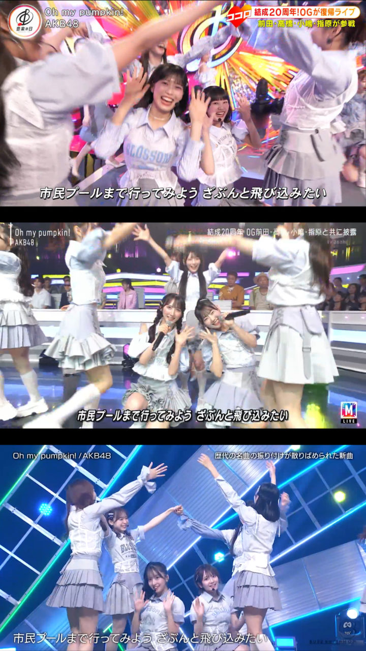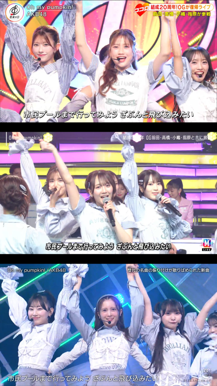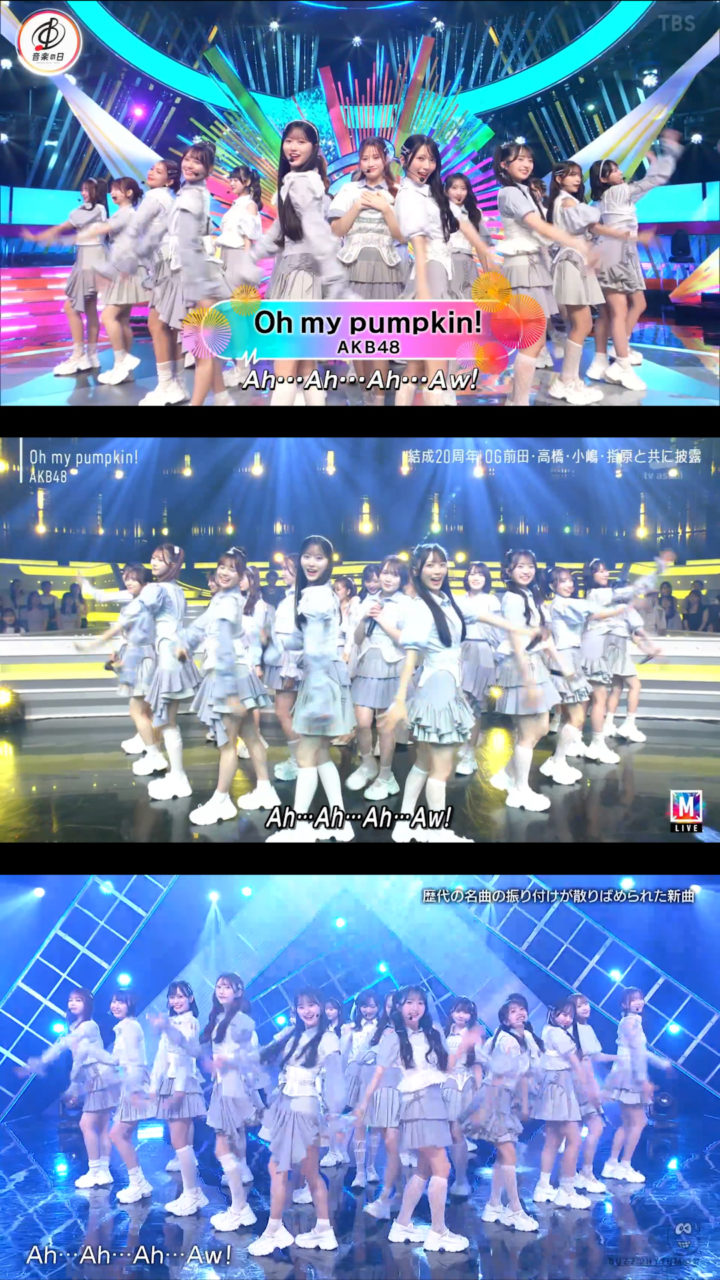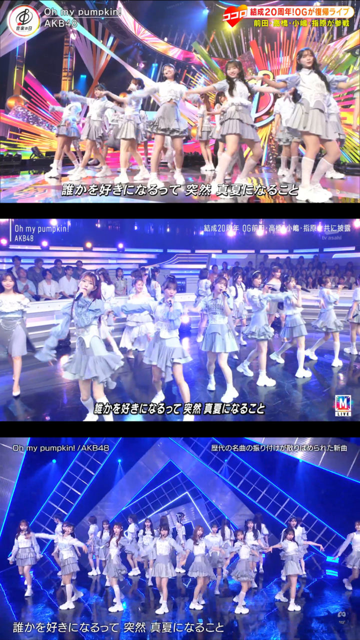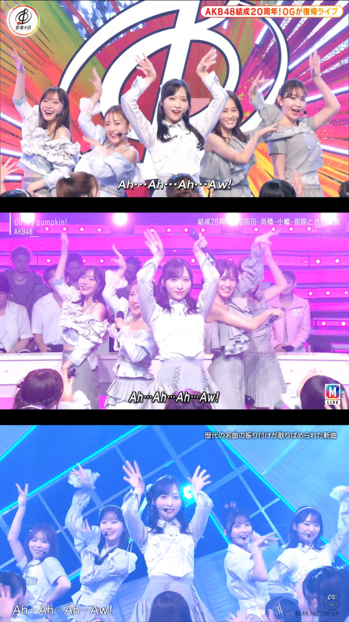 9月12日放送の「バズリズム02」にAKB48が出演、「Oh my pumpkin!」現役メンバー22人ver.を初披露しました。現役のみになったことに伴いポジションはもちろん一部振りも変わっていました。