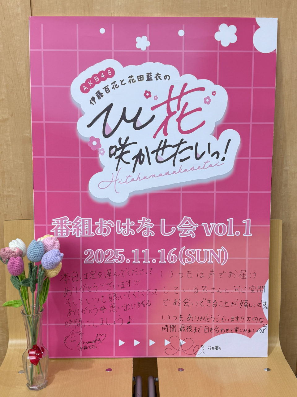 番組初イベント「AKB48伊藤百花と花田藍衣のひと”花”咲かせたいっ!」番組おはなし会 vol.1が11月16日(日)に文化放送 メディアプラスホールで開催されました!
