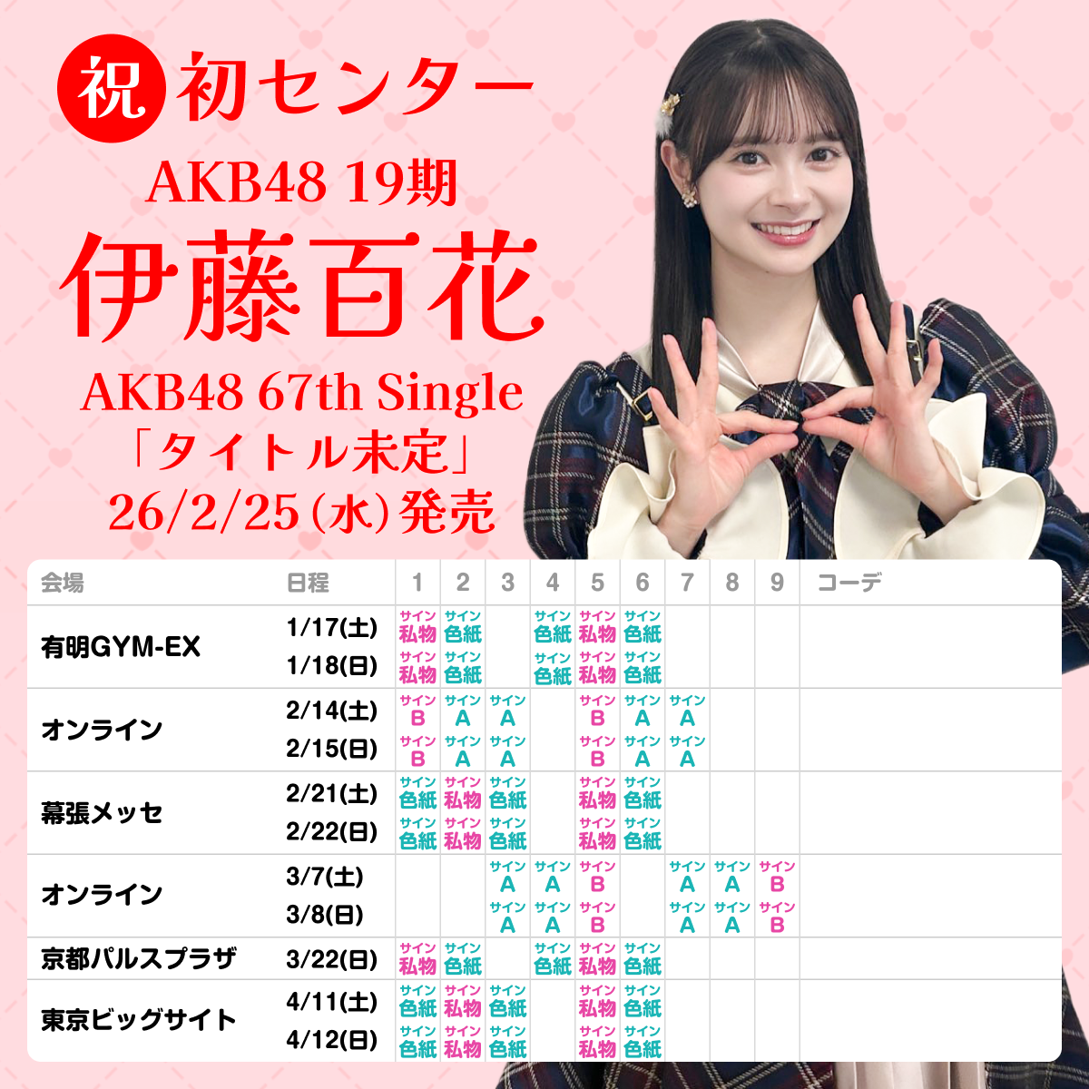 伊藤百花が初センターを務める67thシングルの握手会の受付がスタートしています!いとももの初センターを祝福しに行こう!