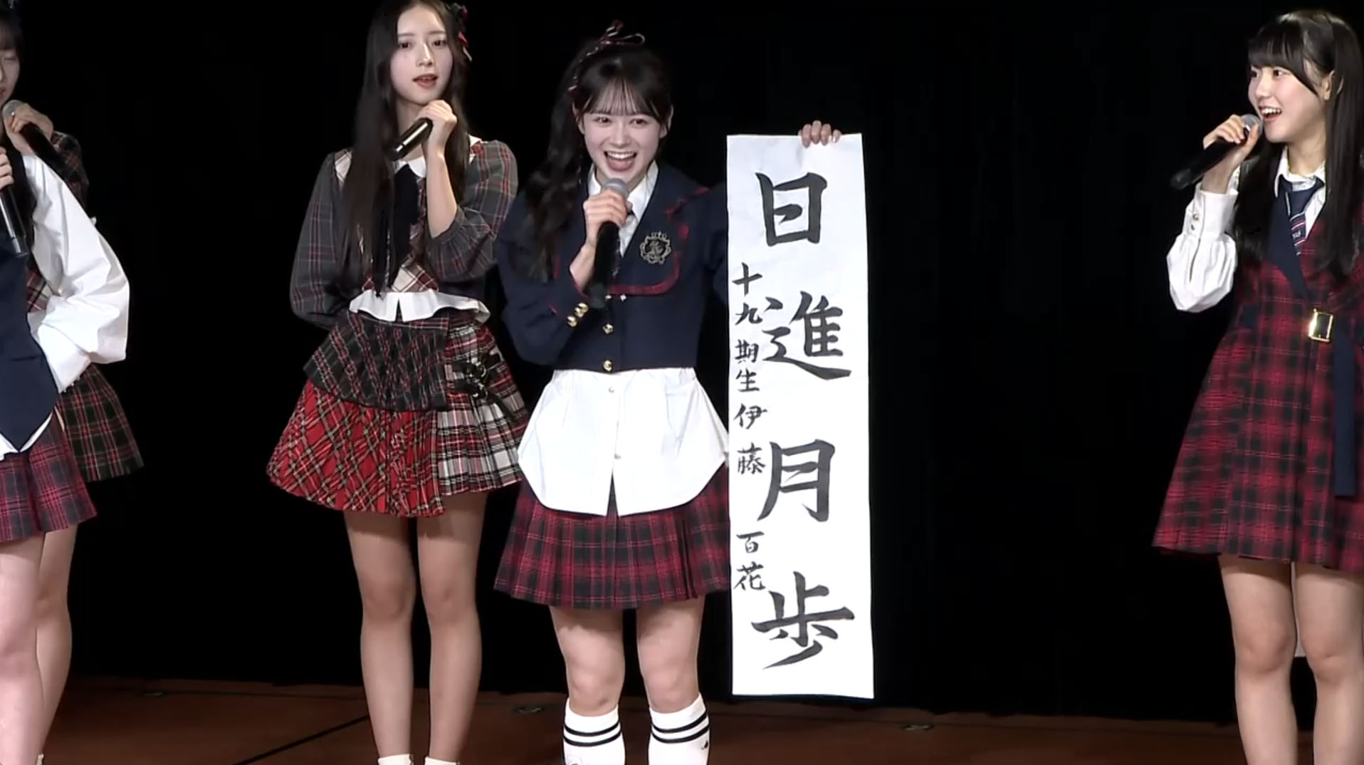 2026年1月1日にAKB48劇場で行われた「元日公演」にて恒例の書き初めを披露した伊藤百花。