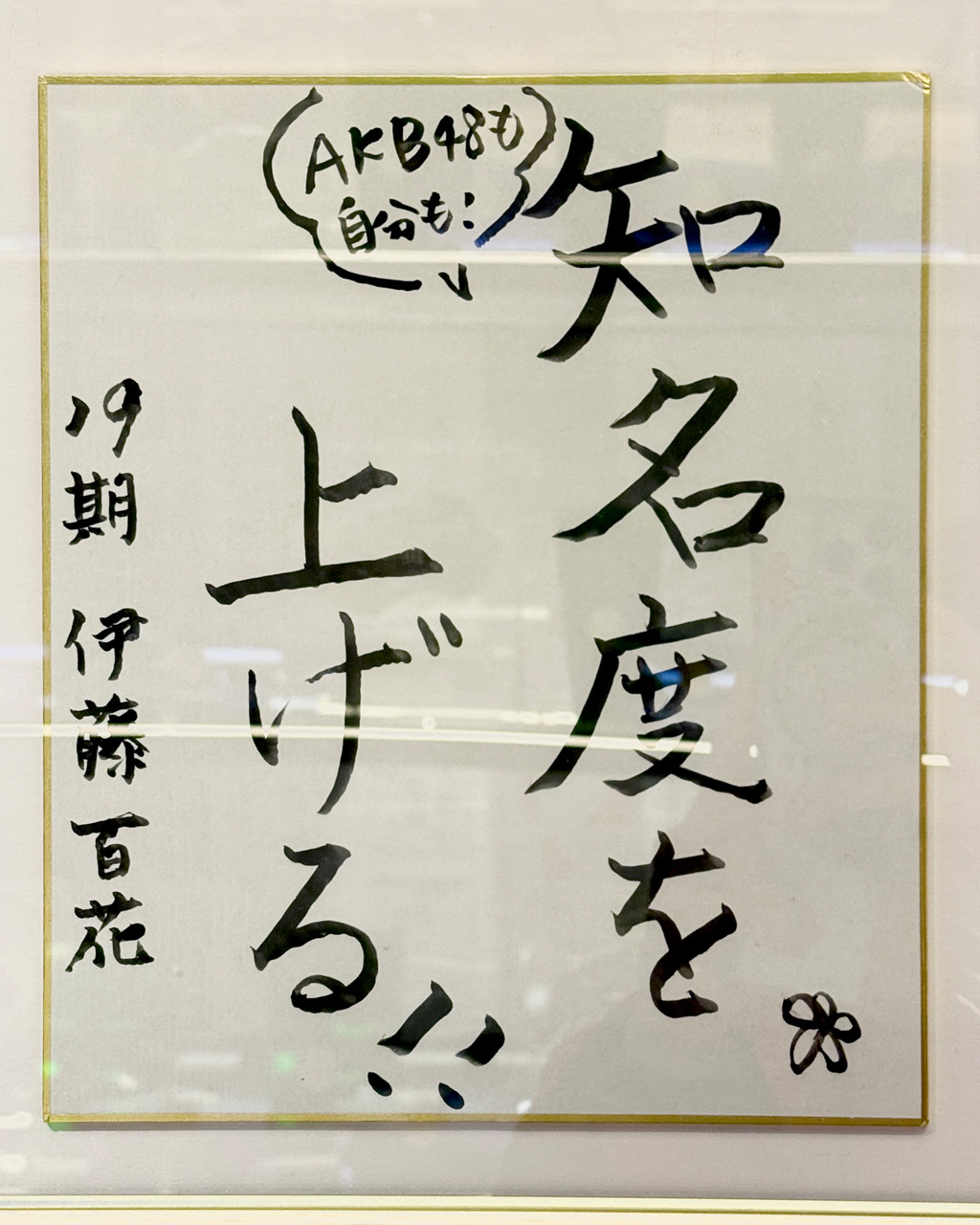 今年最初のシングルのセンターを務めるいとももは、歴代センターを書いた紙を披露。第23代のセンターとして「先輩方に並んでも恥じないように日進月歩!」ということで、今年の書き初めは「日進月歩(たえまなく、どんどん進歩すること。)」でした!